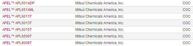 APEL不但具有優異防潮性、耐化學品性,且因其可通過γ射線及高壓蒸氣殺菌,非常適合做為醫療用途的包裝容器,如: