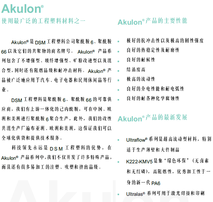 >> 荷蘭DSM帝斯曼AKULON品牌系列尼龍66塑膠原料