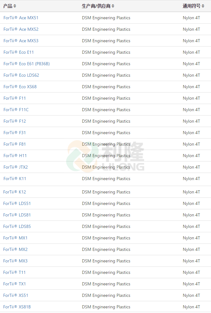 [塑料簡介:]利隆塑料專業經營PA4T塑膠原料,尼龍4T系列荷蘭DSM品牌塑膠原料,想要了解帝斯曼PA4T塑料價格和PA4T原料價格,PA4T是什么材料的客戶,歡迎來電來函咨詢