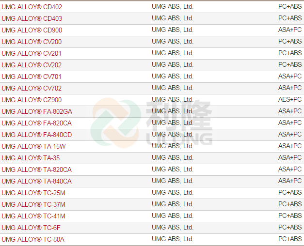>> 日本UMG-ALLOY品牌系列PC/ABS塑膠原料