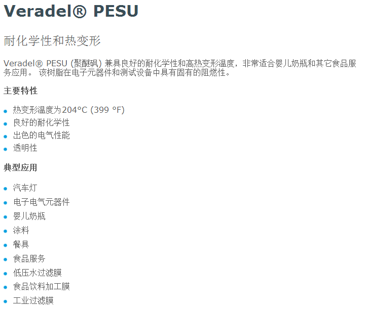 數據表Veradel® PESUVeradel® 3000P涂料用粗顆粒粉,粘度高Veradel® 3000RP高分子量、低官能化Veradel® 3100P涂料用粗顆粒粉,中等粘度Veradel® 3200透明、符合FDA 要求,擠出、注塑成型,熔體速率低Veradel® 3200P涂料用粗顆粒粉,中等粘度Veradel® 3250 MR透明,擠出及注塑成型,中低熔體速率Veradel® 3300 PREM透明,通用注塑成型,中等熔體速率Veradel® 3320GF20%玻纖,不透明,注塑成型,高熔體速率Veradel® 3330GF30%玻纖,不透明,注塑成型,高熔體速率Veradel® 3400透明,注塑成型,高熔體速率Veradel® 3400P涂料用粗粉顆粒,粘度低Veradel® 3500透明,混合,熔體速率高Veradel® 3600透明,混合用,熔體速率極高Veradel® 3600P涂料用粗粉顆粒,粘度低Veradel® 3600RP低分子量,高官能水平Veradel® A-201透明,符合FDA要求,擠出注塑成型,熔體速率低Veradel® A-301透明,符合FDA要求,注塑成型,熔體速率中等Veradel® A-304P涂料用粗粉顆粒,粘度高Veradel® A-702透明,混合,熔體速率極高Veradel® A-704P涂料用粗粉顆粒,粘度低Veradel® AG-32020%玻纖,不透明,注塑成型,熔體速率高Veradel® AG-33030%玻纖,不透明,注塑成型,熔體速率高
