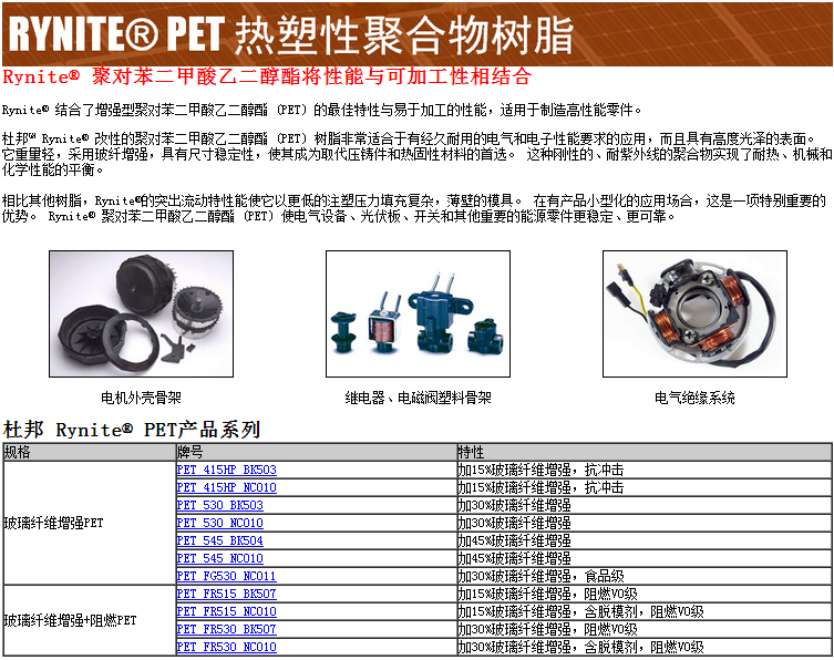>> 美國杜邦RYNITE品牌系列PET塑膠原料