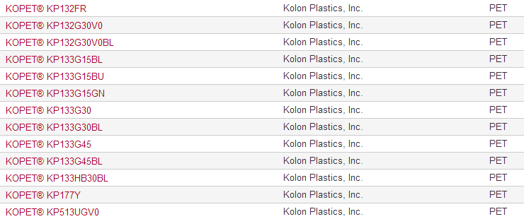 >> 韓國可隆KOPET品牌系列PET工程塑料