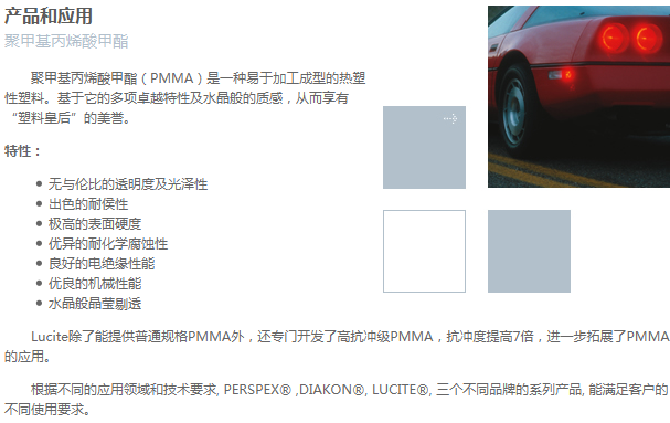 >> 璐彩特LUCITE系列PMMA塑膠原料